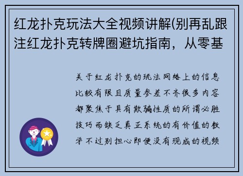关于“红龙扑克”的骗局揭秘视频及其官网,我查询了现有的网络信息,但暂未找到一个明确可靠的官方网站。目前搜索到的内容大多与各类骗局有关,你需要非常小心地甄别。 在哪里可以找到骗局揭秘视频 如果你想通过视频了解扑克骗局,可以参考以下途径。不过请注意,这些内容多为玩家分享或媒体报道,你需要理性判断。 | 视频平台/来源 | 可搜索的关键词/片名 | | :-- | :-- | | 抖音、Bilibil...