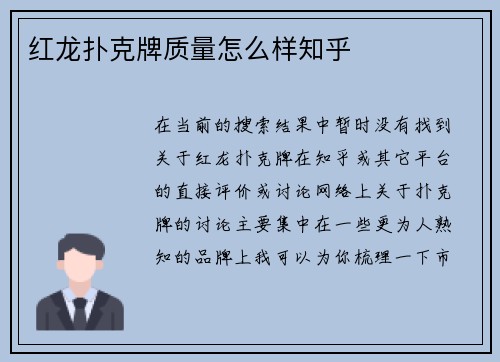 关于您提出的“鼎升浙江扑克背红龙”,根据目前的搜索结果,没有找到明确与之对应的商品或品牌信息。搜索结果中多次出现了一个名为“红龙”的扑克赛事品牌,它主要在亚洲地区举办扑克巡回赛。 了解红龙扑克巡回赛 这里提到的“红龙”通常指的是 “红龙扑克巡回赛” ,这是一个在亚洲扑克圈内颇具影响力的赛事系列 。 * 近期赛事:例如,在2024年8月,该巡回赛在韩国济州岛的 Landing Casino 举办了...